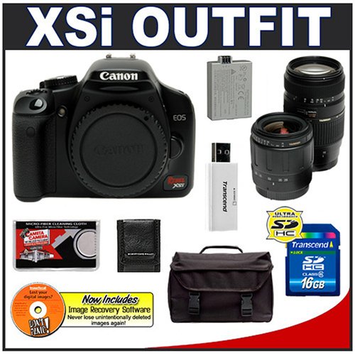 Buy Cheap Canon EOS Digital Rebel XSi 12.2-Megapixel SLR Camera Body with Tamron 28-80mm and 70-300mm Lens + 16GB Card + LP-E5 Battery + Case + Bonus Accessory Kit