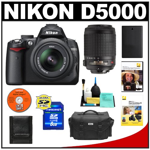 Cheap Nikon D5000 Digital SLR Camera w/ 18-55mm VR Lens + 55-200mm VR Zoom Lens + 8GB Memory Card + Spare EN-EL9 Battery + Case + Cameta Bonus Accessory Kit + 2 Nikon School DVDs