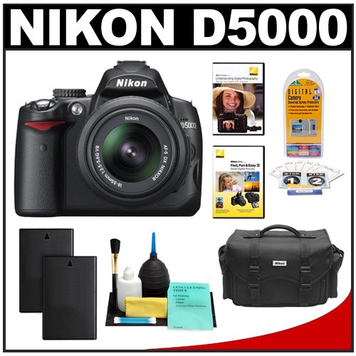 Buy Cheap Nikon D5000 Digital SLR Camera w/ 18-55mm VR Lens + Two (2) Spare EN-EL9 Batteries + Case + Nikon School DVDs + Accessory Kit